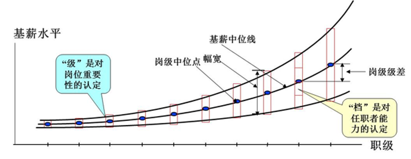 第三步:確定基薪在市場(chǎng)上的定位,以及各個(gè)級(jí)別的基薪幅寬
