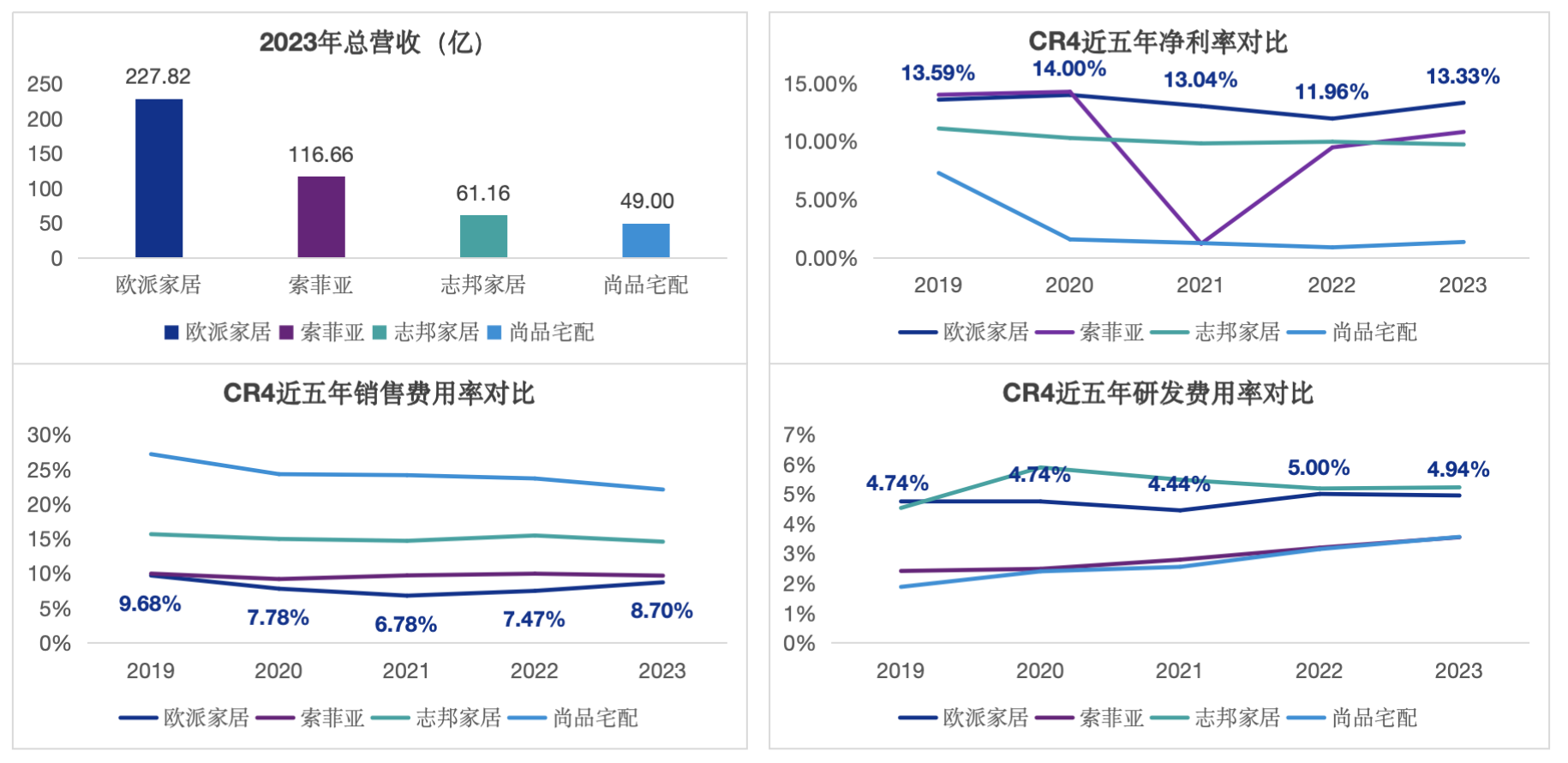 細(xì)觀行業(yè)CR4(前四大企業(yè))2023年的財(cái)務(wù)數(shù)據(jù),發(fā)現(xiàn)其打法各有不同。