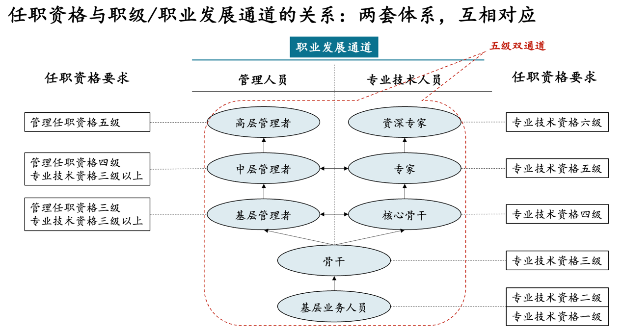 員工薪酬多少、薪酬的增長都依賴于職級(jí)的晉升,而職級(jí)的晉升有一個(gè)必備條件就是獲得相對(duì)應(yīng)的任職資格評(píng)價(jià),當(dāng)然,管理類也是遵從此規(guī)則,因此在人員薪酬和職位提升的需求激勵(lì)下,形成一個(gè)員工個(gè)人努力提升能力取得相應(yīng)任職資格繼而獲取崗位晉升和薪酬的增長,最終推動(dòng)整個(gè)組織能力的提高。